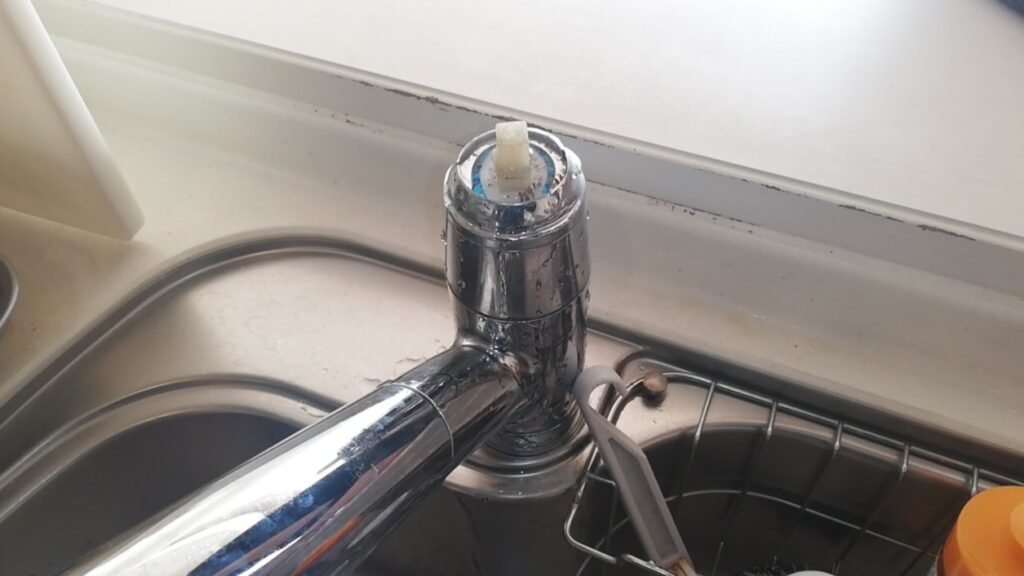点検してみると、レバー根元のカートリッジ劣化により水漏れが起こっていました。カートリッジの故障の場合は、カートリッジを交換するか蛇口ごと交換するかの対応になります。