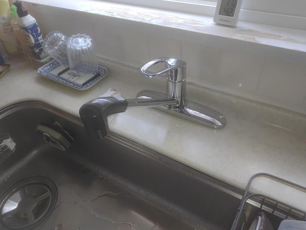 何度かご依頼いただいているリピートのお客様から『水が滲みてくるようになったから台所蛇口を交換してほしい』とお電話いただきご訪問いたしました。