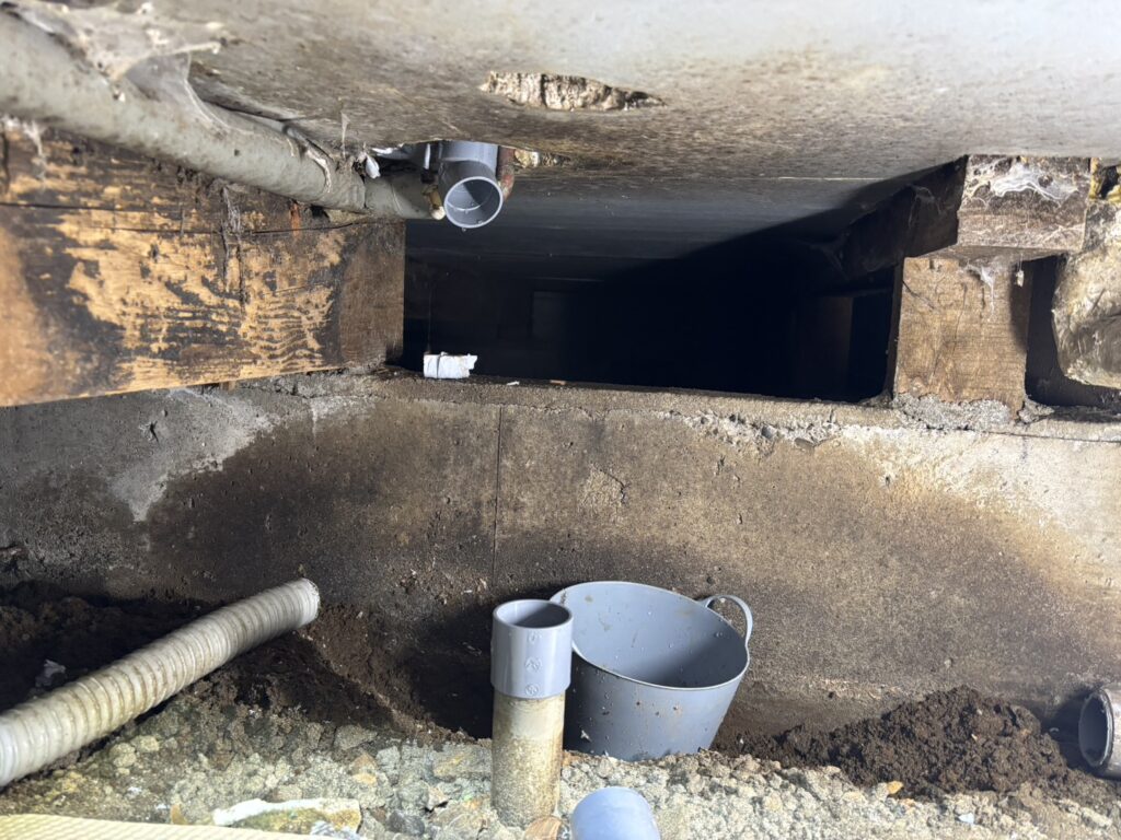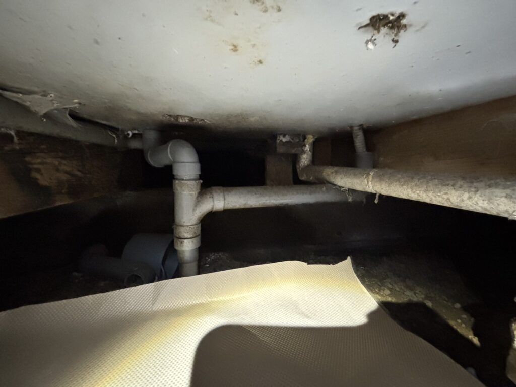 今日は「台所の下から水漏れと、ネズミにかじられてしまうことが多くて」とお電話があり、作業員が訪問した現場をご紹介いたします。少し前に、排水の蛇腹ホースを交換していましたが、そことは別に水漏れしている箇所が見つかったため、詳しく点検を行いました。排水が流れると配管の経年劣化を起こしており、つなぎ目から水漏れしているため、そこの配管を取り替える必要があります。