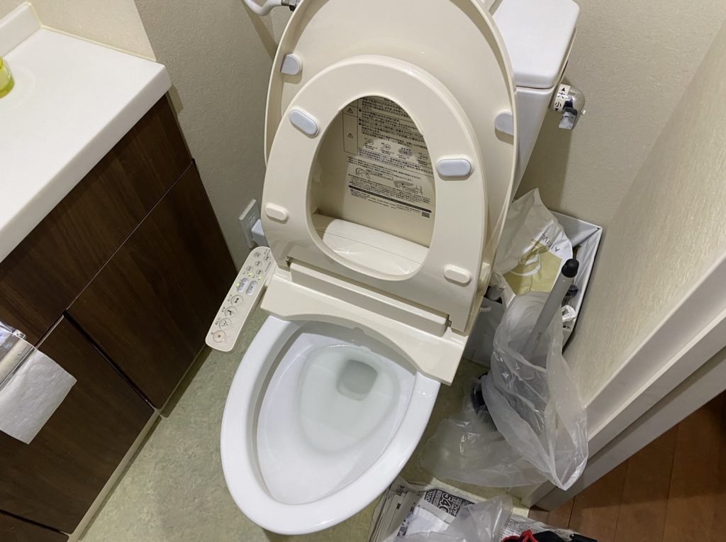 確実な詰まり除去のために、便器の脱着作業を行い、詰まりを解消致しました。