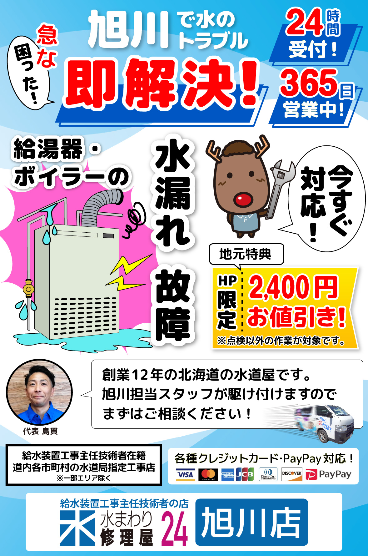 【水まわり修理屋.24】の旭川待機エリアから出動します!