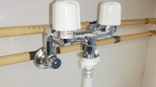 | 壁などの垂直な向きに設置し、お湯と水が混ざって使用できる蛇口の交換作業です。 | |