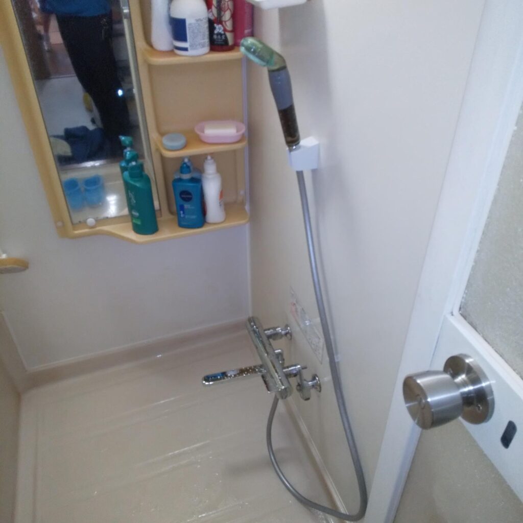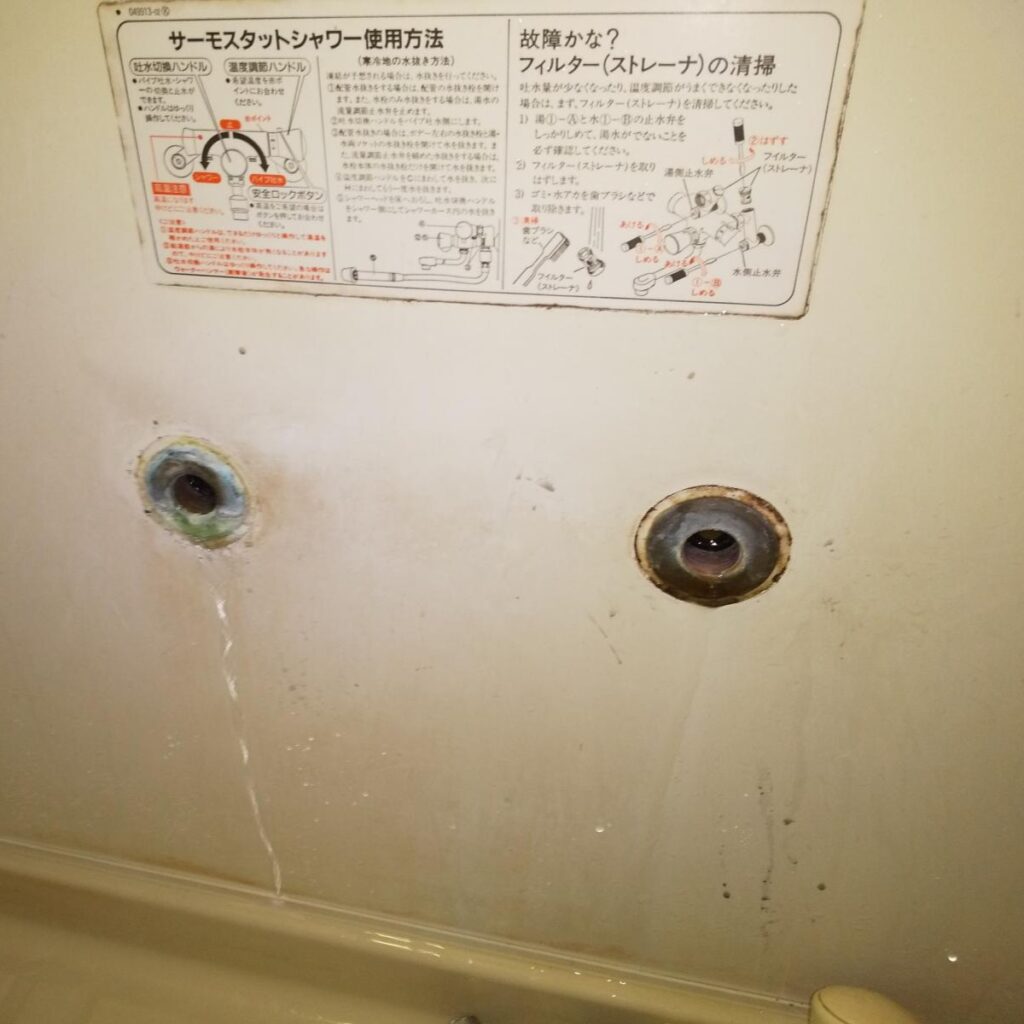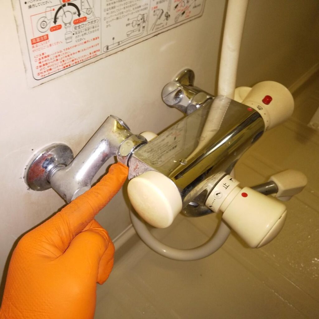 さて、お客様から浴室蛇口からタチタチ水漏れしているとご連絡があり、エリアスタッフが訪問しました。点検していくと蛇口下のネジから水漏れしているように見えていましたが、そこではなく写真☞のクランクのところから水漏れしています。ナット部分の増し締めを行いましたが、水漏れは変わりません。KVK KF112Gという型番の蛇口で今は生産終了となっている蛇口。中の部品の故障の可能性が高いですが、部品の取り寄せもできないため、今回は本体交換をしました。