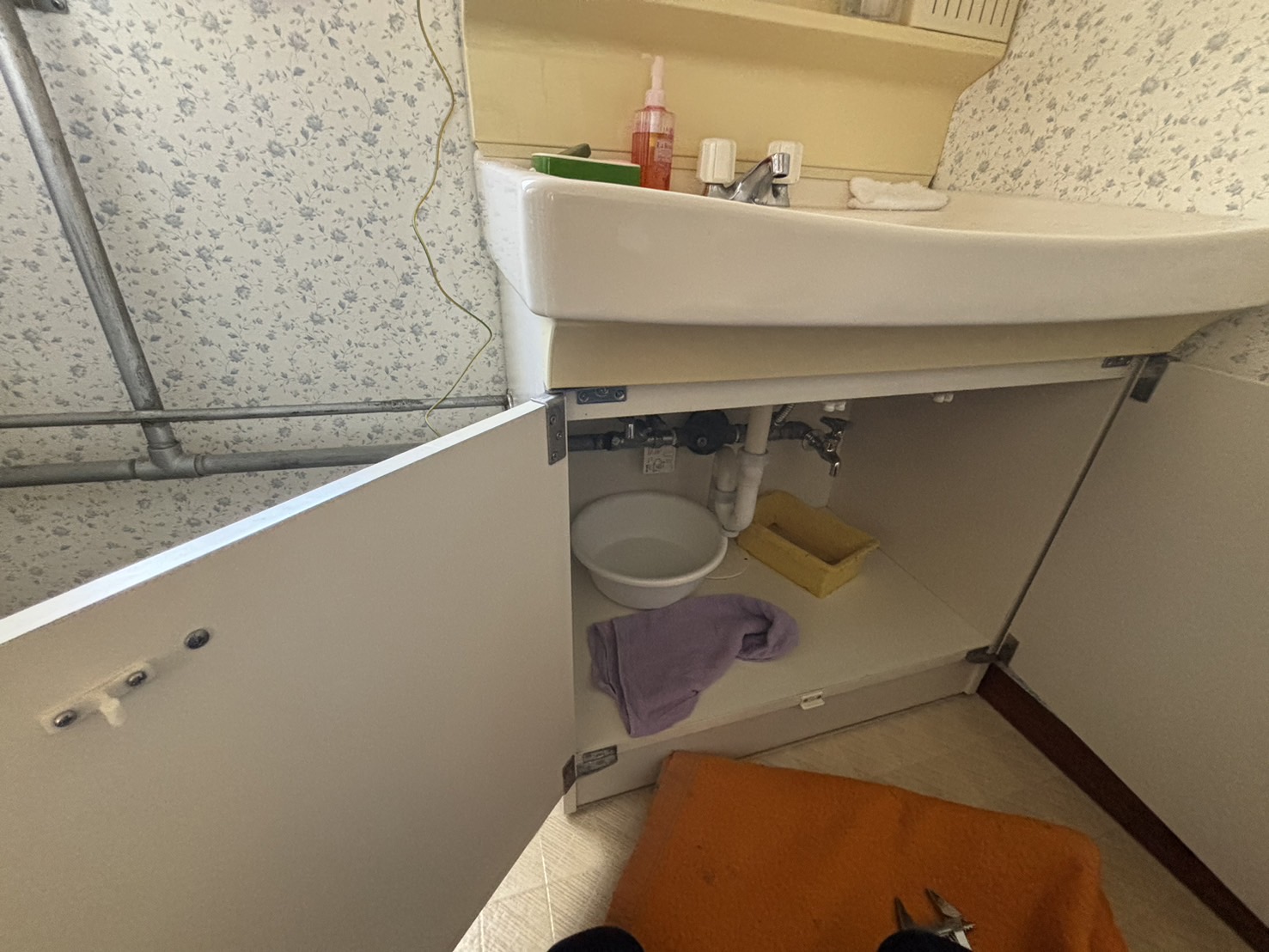 今日は江別市見晴台のお宅から、洗面所の下に水漏れしているとのお電話をいただきました。
