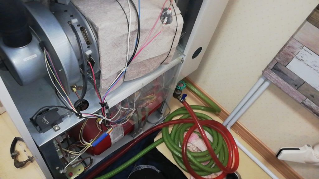 入っている不凍液を排出し、管内を洗浄してから新しい不凍液を入れます。その後はエア抜きして圧を調整。この作業に3時間ほど要します。最後に試運転をして交換完了です!