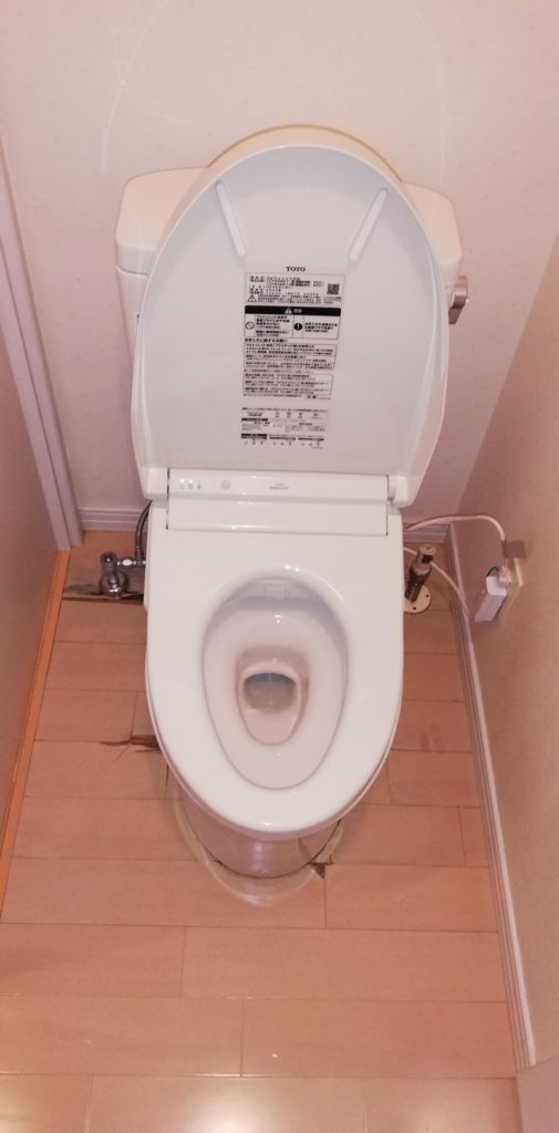 トイレ本体とトイレ下の部材も交換し、水漏れがないことも確認して完了です。