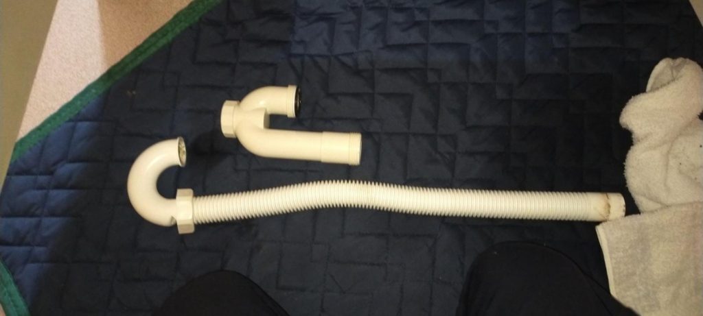 となると、怪しいのは洗面台したの「排水トラップ」と呼ばれるS字形の排水管です。ここは洗面台でしようした石鹸カスや垢・髪の毛・歯磨き粉などの汚れが溜まって、水の流れ道を細くしている事がよくあります。