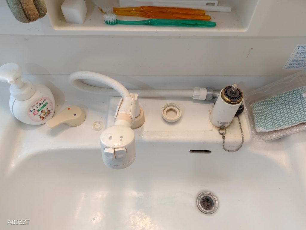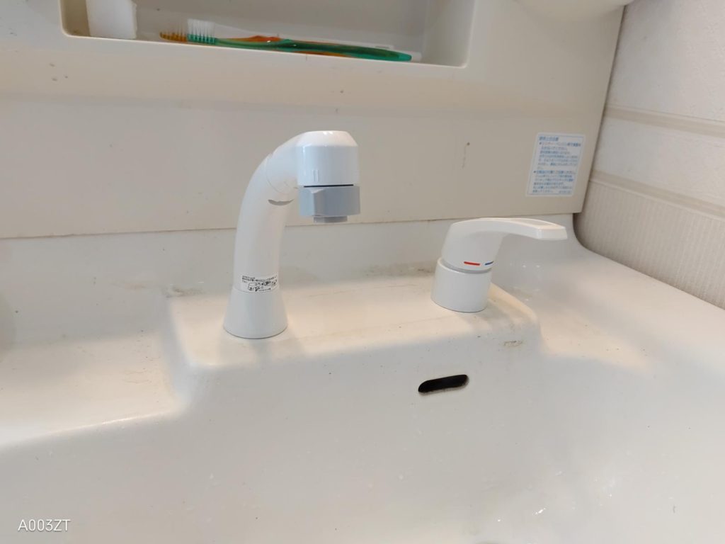 『ちょっと前から洗面所の蛇口からポタポタ水が漏れるんだよね~。』とご連絡いただき早速出動です(^▽^)