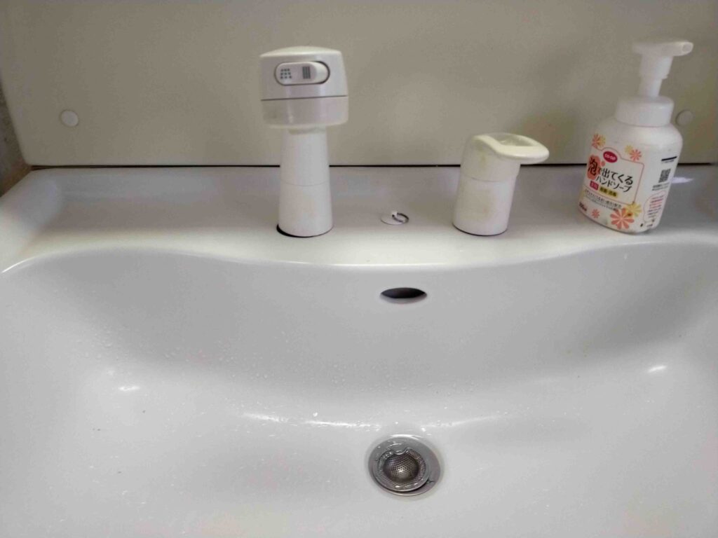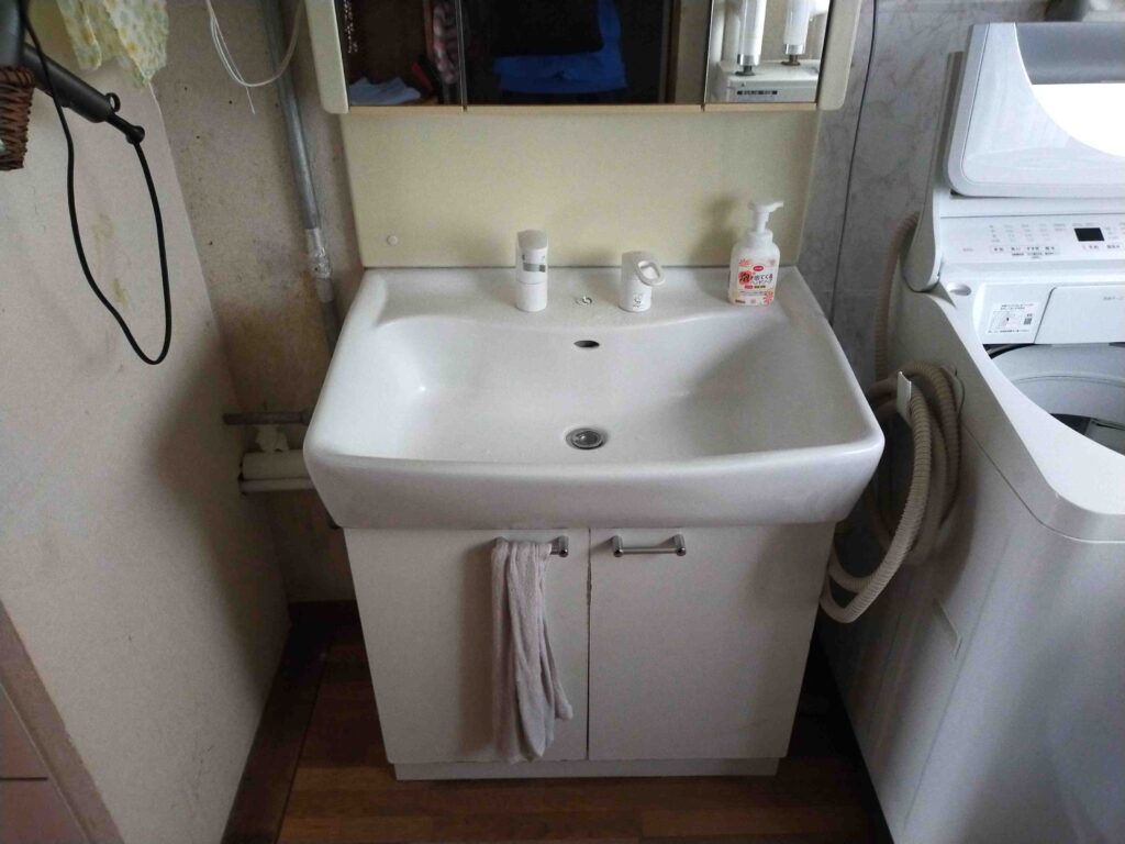今日は洗面蛇口が壊れたまま使っていたけど、直したいとお電話があり、担当エリアのスタッフが向かいました。蛇口は30年近く変えていないとのことで、大事にご使用していたとのこと。途中でぶつけてヒビが入ってからも辛抱して使ったけれど、水漏れしていてと伺いました。