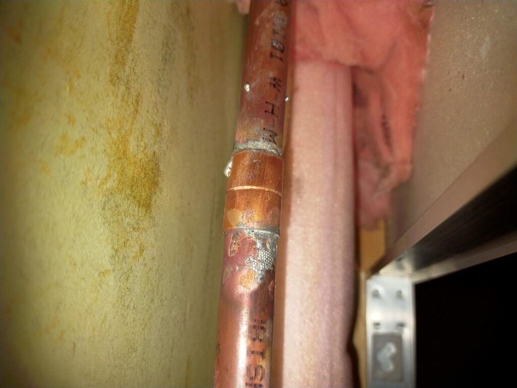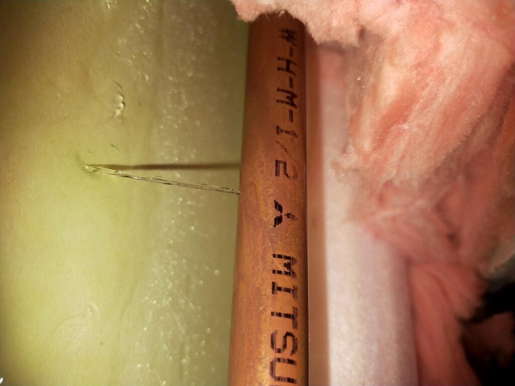点検するとどうやら壁の中を通っている水道管に穴があき水漏れしていました。