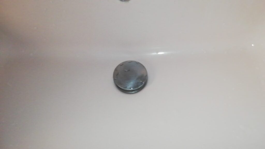ヘアキャッチャーをつけると流れが悪くなるようで、点検していくと排水栓がプッシュ式のポップアップタイプでそこに要因がありそうだとわかりました。