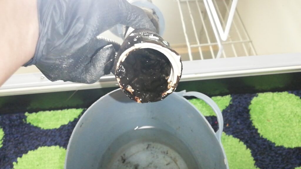 台所から排水された水が流れていく屋外の桝や排水トラップから排水管までを繋いでいる蛇腹ホース内に汚れが溜まってしまっていることが多いのですが、今回屋外の桝にはつまりの原因になるほどの汚れの蓄積はありませんでした。