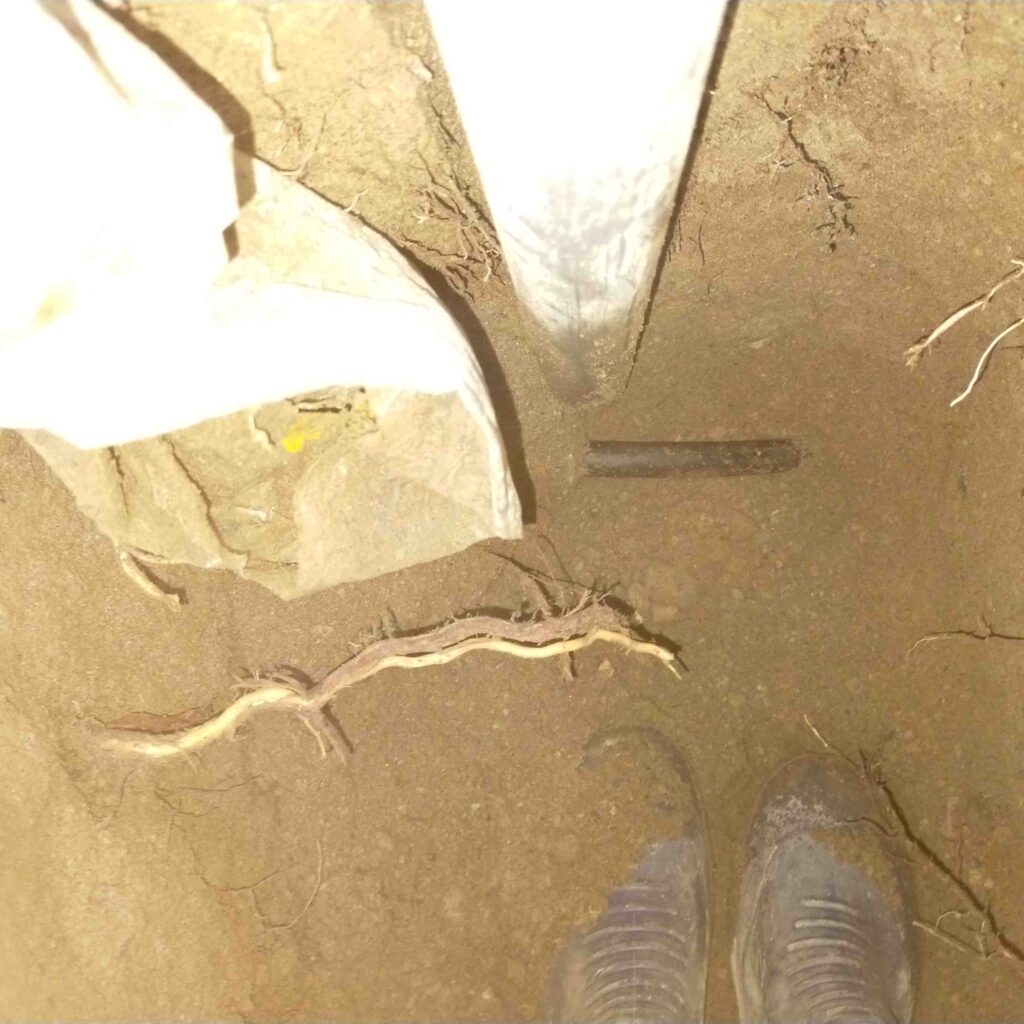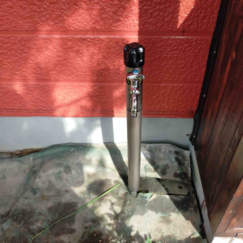 現地で見ていくと、立水栓と呼ばれる外に柱が自立して出ているタイプの散水栓です。蛇口本体が取れていて、この場合は本体ごと交換が必要になります。散水栓は市区町村によって下に繋がる給水管の深さが異なります。また北海道は寒冷地特有の凍結にならないような配慮として、凍結深度はとても重要になってきます。