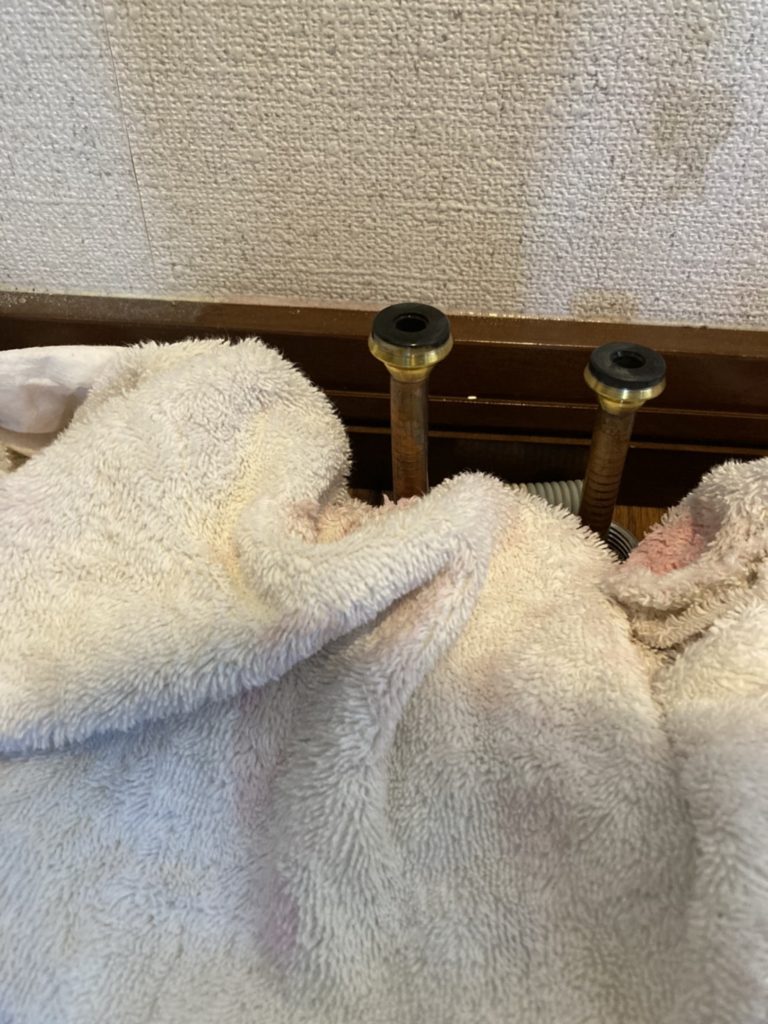 見てみると管の繋ぎ目あたりから液漏れが確認できました。