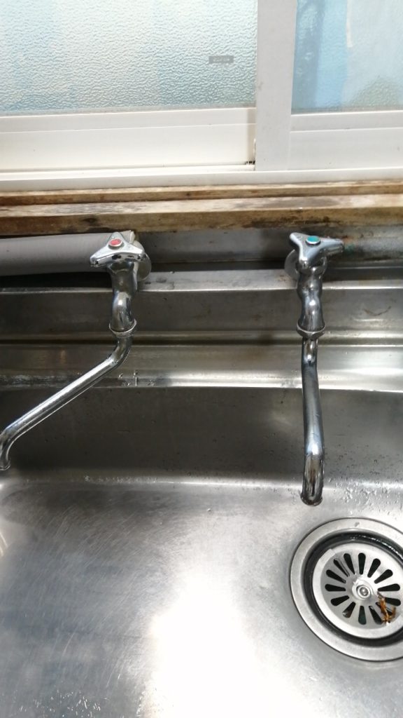 伺ってみると、『単水栓』と呼ばれる水・またはお湯のみが出てくるタイプ蛇口でした。いま主流なのが『混合水栓』と呼ばれる1つの蛇口から水とお湯どちらも出せるタイプになるので、長らく家庭を支えてくれた蛇口ということになります!