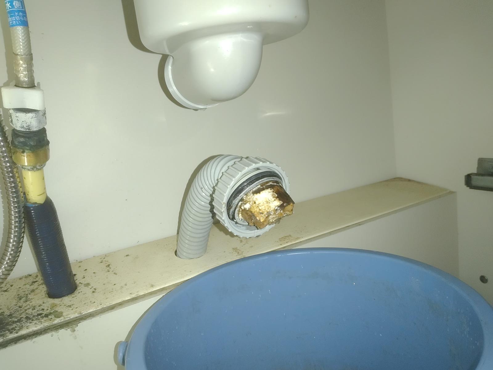 点検してみると、台所の排水トラップにてつまりが発生していました。排水トラップ自体が劣化している場合や、汚れが固まりすぎて清掃が難しい場合は排水トラップの交換作業をすることもありますが、今回は清掃作業で汚れを取ることができました。