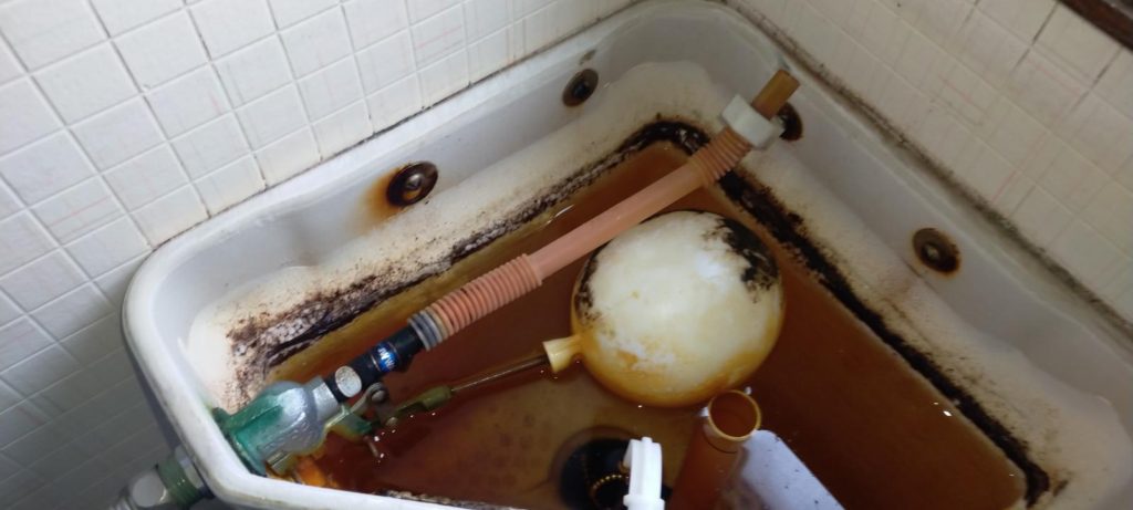 漏水していたのはトイレでした。トイレタンクの中にある部品が故障してちょろちょろとタンク内の水が便器の方に流れておりました。よく見なければ気付かない程度ですが、塵も積もればなんとやらで、水道料金に影響がでちゃったんですね。