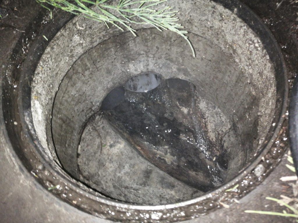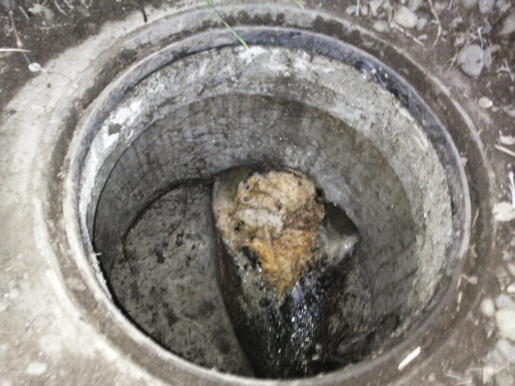 確認すべく、排水のマス呼ばれる点検する穴から見ると、やはり汚れが詰まっておりました。