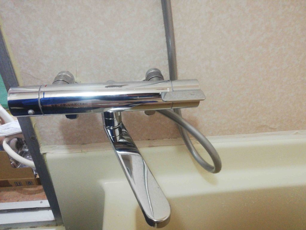 お客様からのご依頼はお風呂での蛇口水漏れ。お客様がお風呂場で滑って転んでしまい、その時に浴室蛇口にぶつかって、それから水漏れが起こるようになってしまったとのことでした。