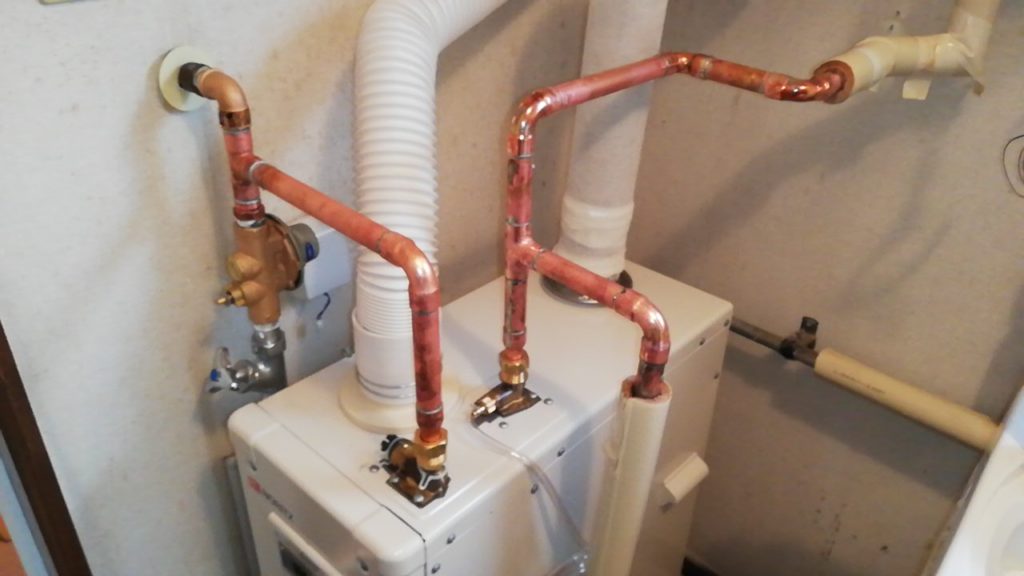 安全弁を交換だけするこも可能ですが、安全は2つついており、今度はもう片方が故障する可能性があるということ。それとは別に、ボイラー自体が不具合を起こす可能性。また、ボイラーごと交換した場合は、安全弁が不要な直圧式のボイラーに交換するこで、今後のメンテナンスにかかる料金は安くなること。これらを総合的にお客様とお話しし、今回はボイラーごと交換させていただくことになりました。